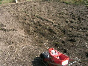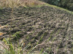 前刈り倒してありました。蒔く何日か前、トラクターでざっと耕してありました。