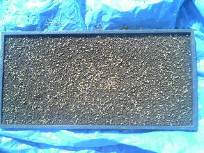 いよいよ種蒔きです。まず苗箱に土を入れます。1箱に80〜90g蒔きました。種籾はかなり