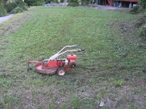 払い機を使いますが、平らの部分は管理機タイプの草刈り機で刈っています。草を刻みながら