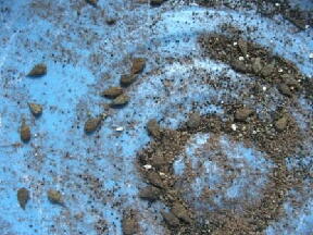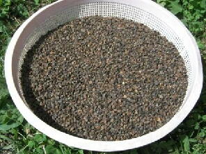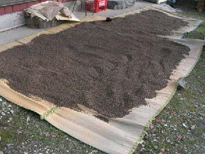 収穫したそばを天日干しにしました。ござの上に広げるj前に、金属のふるいの目の一番粗