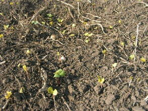 種蒔きから4日目芽が出始めました。種蒔きから発芽まで雨は降りませんでした。乾いた土