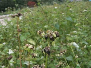 種蒔き後1ヵ月もたたないうちに花盛りです。蕎麦の生育の早さに驚かされます。花の美しさ