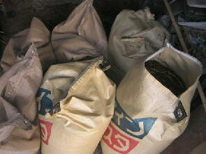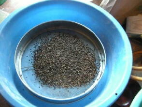 製粉前に仕上げに金属のふるいの目の一番細かいのを使って草の種や土などを落としま