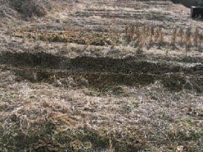 野菜の畑は2枚ですが、一枚は日当たりが良くないため雪がかなり残っていました。