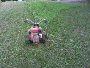 耕さずに草を生やしていた畑の草刈りを行い、刈った草が大体枯れたところで耕起しました。