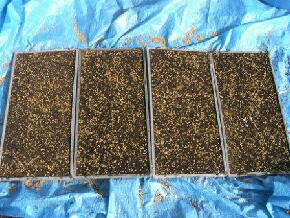 種まきは1箱100グラム蒔きとしました。400グラム計って一度に4箱蒔くことによって作業