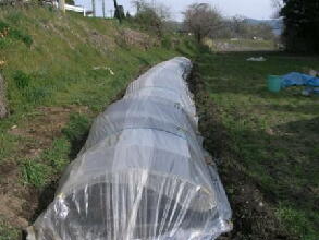 スピードのアップにはなりました。ただやはりばらつきがあり改善の余地は多分にあります。種 まき器を使ってみることも検討しています。前年に比べて苗は出来は少し悪かったです。グラ ム数が多かったのかもしれませんし、苗代の中の土に原因があるかもしれません。先程書い たように客土によって改善を図りたいと思います。グラム数は欠株を減らす為このままくらいに はしたいと考えています。また、多少のばか苗病が出たということもあり温湯処理はやった方 がいいかと考えています。苗のトンネルが蛇行したため支柱などを使ってまっすぐにしたいと思 います。