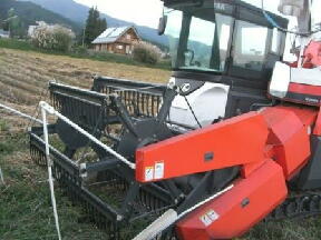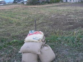 収穫はコンバインでやってもらいました。10年目の畑の収量は少なかったですが、1年目の