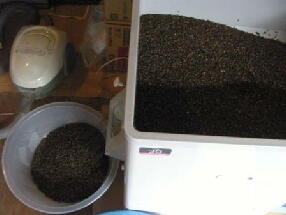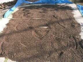 丸一日天日干しして製粉しました。今年は石抜き機も導入(上右の写真)してより美味し
